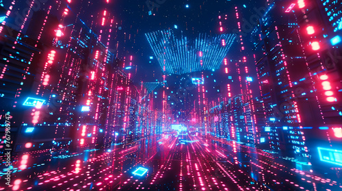 Futuristic Technology Network, Blue Digital Abstract Background, Sci-Fi Concept
