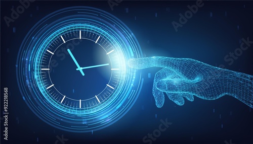 Futuristic time clock hand and clock face digital transformation abstract technology background. Business growth currency stock timer and investment economy. illustration