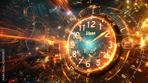 Futuristic time concept with glowing clock and abstract technology elements,International Ideas Month ,
