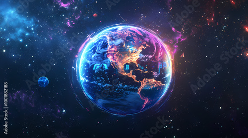 futuristic typography with planet earth and cosmic background. Futuristic Typography. Illustration