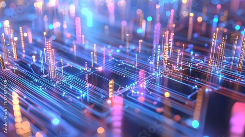 Futuristic Urban Connectivity - Vibrant Abstract Cityscape with Digital Networks and Colorful Lights