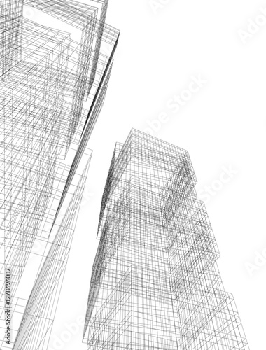 Futuristic Urban Wireframe. Geometric High-Rise Concepts