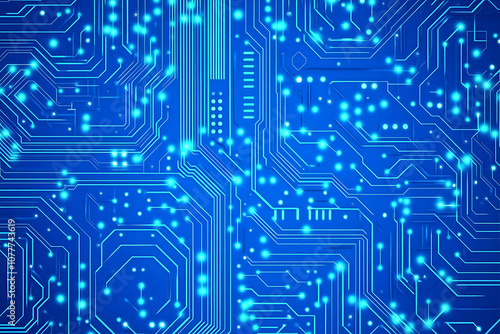 Futuristic vector illustration of a blue circuit board with intricate digital tech elements, perfect for advanced technology backgrounds.
