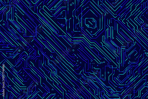 Futuristic vector illustration of a blue circuit board with intricate digital tech elements, perfect for advanced technology backgrounds.