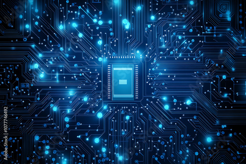 Futuristic vector illustration of a blue circuit board with intricate digital tech elements, perfect for advanced technology backgrounds.