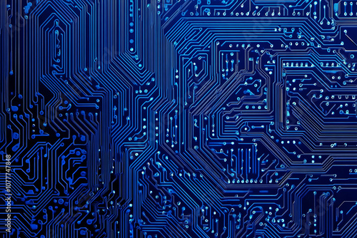 Futuristic vector illustration of a blue circuit board with intricate digital tech elements, perfect for advanced technology backgrounds.