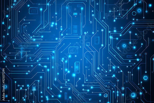 Futuristic vector illustration of a blue circuit board with intricate digital tech elements, perfect for advanced technology backgrounds.