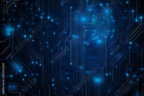 Futuristic vector illustration of a blue circuit board with intricate digital tech elements, perfect for advanced technology backgrounds.