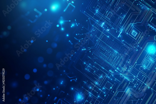 Futuristic vector illustration of a blue circuit board with intricate digital tech elements, perfect for advanced technology backgrounds.