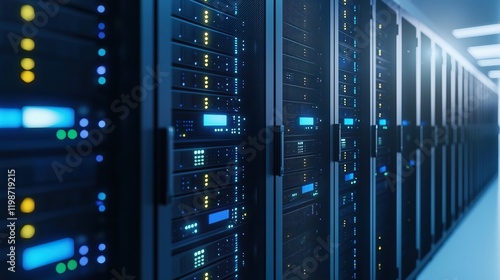 Futuristic View of Fully Operational Server Rack in Data Center, Fully Operational Server Racks are big concept.