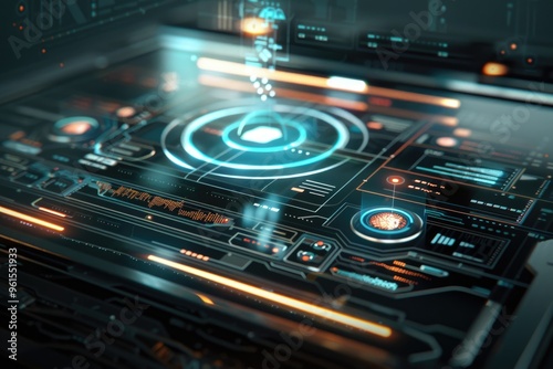 Futuristic virtual interface on digital gadget for innovative technology and design AI
