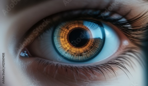 Futuristic Vision Close-Up of Woman's Eye with Analyzing Lens