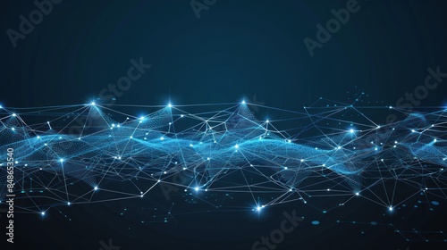 Futuristic wave. Abstract wave with blue dots and lines. Dark background particles