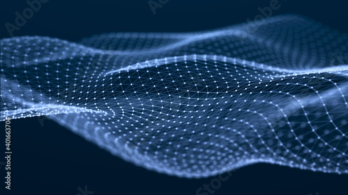 Futuristic wave with points and lines. Big data. Dynamic wave background. 3d rendering