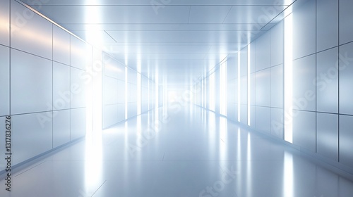 Futuristic White Corridor with Bright Lights: A Modern Architectural Visualization