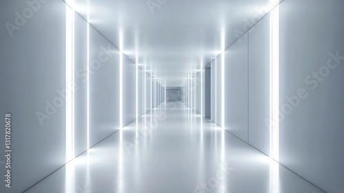 Futuristic White Corridor with Bright Neon Lights: A Modern Architectural Visualization