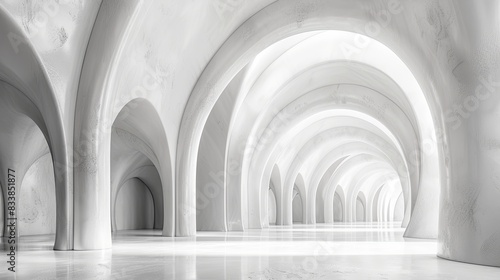 Futuristic White Minimalist Architecture with Ocean View and Blue Sky, Featuring Curved Shapes, Elegant Arches, and a Spacious Platform for Pavilion or Stage. Hyper Realistic, Cinematic Daylight Scene