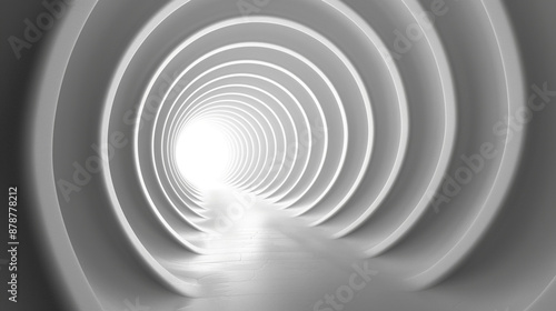 Futuristic White Tunnel with Glowing Light & Concentric Circles