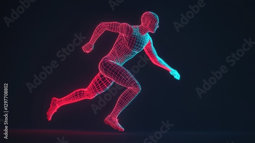 Futuristic Wireframe Runner Concept in Neon Colors with Motion Blur Effect for Sports and Technology Themes