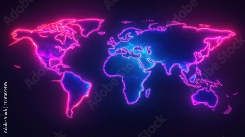 Futuristic world map with neon paths linking continents, symbolizing the complexity of global trade and international commerce.
