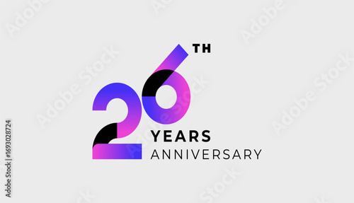 Futuristic Year Anniversary Gradient Purple Colour 26th, 26th Happy Anniversary with Simplicity, Geometric and Modern.