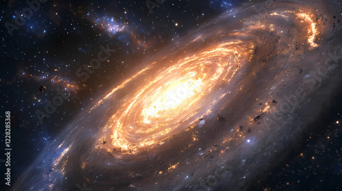 Galactic expansion at hyper speed illuminated by radiant luminescence near the event horizon. galactic horizon edge. illustration. radiant. illustration. Radiant Horizon. Illustration