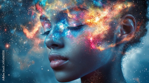 Galactic Gaze. Portrait with Universes Emanating from the Eyes