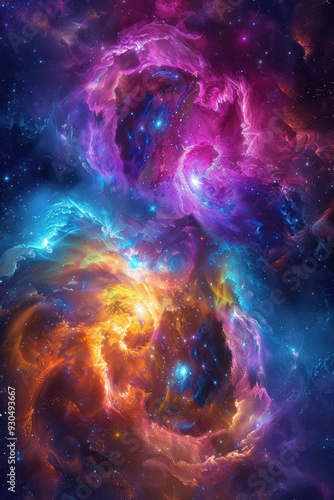 galactic tide swirling gracefully around a mesmerizing star cluster. The rich colors and dynamic patterns highlight the beauty and grandeur of the galaxy.