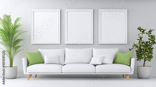 Gallery Wall with Multiple White Frames: A collection of various-sized white frames arranged gallery-style on a neutral wall, creating an organized yet artistic display.