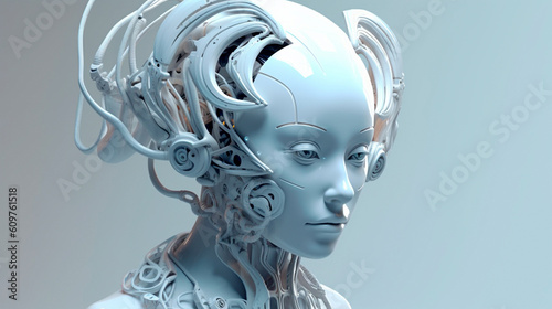 Game development of AI, Artificial Intelligence digital 3D head with futuristic design. Generative AI