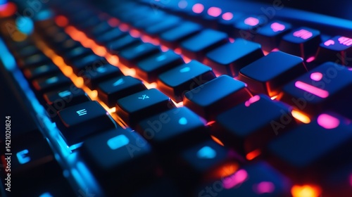Gaming keyboard rgb led lights gamer hands typing esports neon backlit computer technology equipment