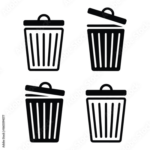 Garbage Can Icon Set in Black and White Vector Illustration for Environment and Waste Management