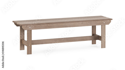 Garden, outdoor furniture isolated on white background. Wooden bench. Clipping path included. 3D rendering.