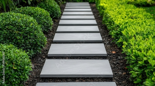 Garden pathway with minimal plant borders, simple outdoor landscaping
