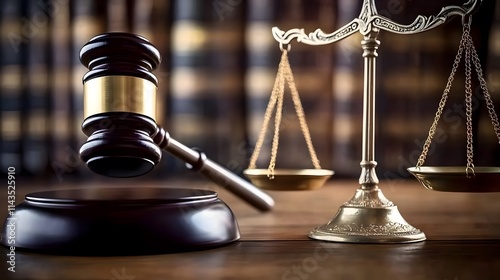 Gavel, scales of justice and law books