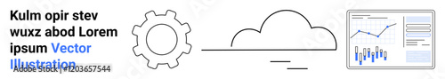 Gear cog, cloud, and analytics dashboard represent cloud computing, data analysis, and technology integration. Ideal for tech, data science, cloud services, IT solutions, innovation, business