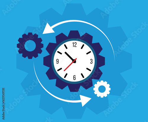 Gear Cogwheels with Clock Technological Illustration. Technology and time management in business vector art