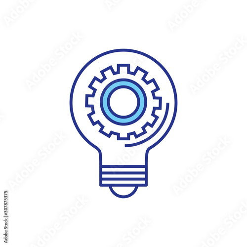 Gear inside light bulb design, construction work repair machine part technology industry and technical theme Vector illustration