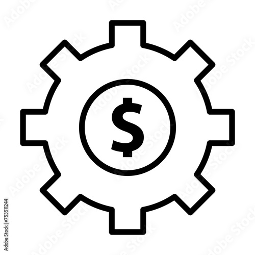 Gear with a dollar sign line vector icon for web, mobile and infographics isolated on white background.