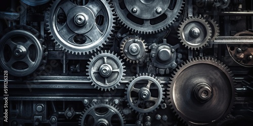gears and machinery at work interlocked and moving in perfect synchronization showcasing the intricacy and precision of industrial technology, created with Generative AI technology