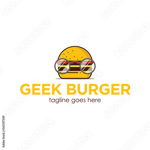 Geek Burger Logo Design Template with burger icon and glasses. Perfect for business, company, restaurant, mobile, app, etc