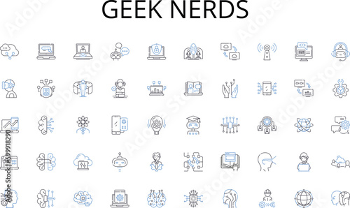 Geek nerds line icons collection. Job, Career, Employment, Labor, Profession, Trade, Business vector and linear illustration. Occupation,vocation,Workplace outline signs set