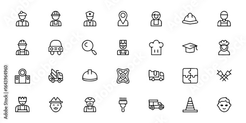 General Labor Outline Icon Set — Occupations, Professions, and Everyday Worker Vector Illustrations for Career, HR, and Training Materials
