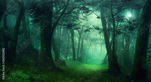 神秘的な森(イラスト風)Generative AI