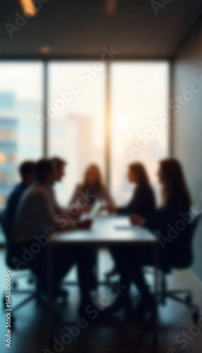 Generative AI: Blurred Image of Professionals Collaborating in a Modern Office Space Meeting