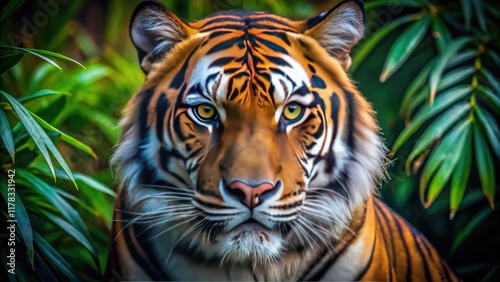 Generative AI captures a breathtaking close-up portrait of an intense tiger, a wild encounter.