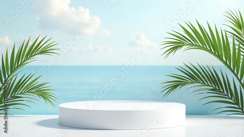 generative ai created empty empty podium scene palm leaf seascape product presentation