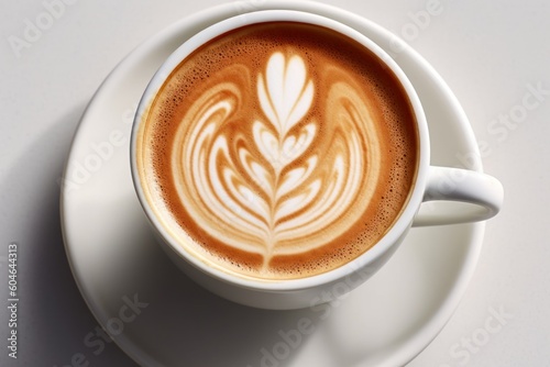 Generative AI cup coffee latte top view Food Photography long Shot
