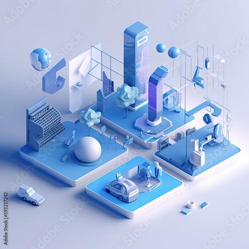 Generative AI illustration of 3D miniature scene that embodies the concept of technology and humanities fusion within a smart community. Incorporate elements