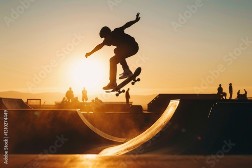 Generative AI Illustration of Dynamic Skater Performing Tricks in Neon Light Atmosphere